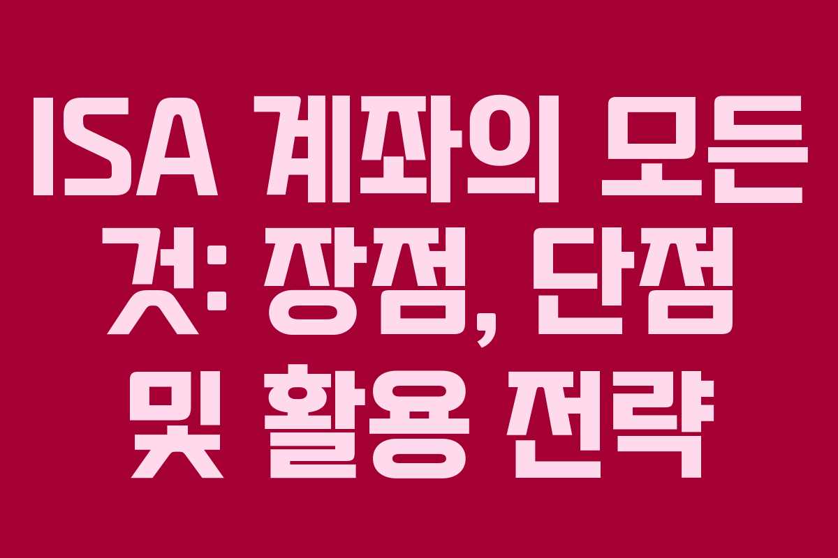 ISA 계좌의 모든 것: 장점, 단점 및 활용 전략