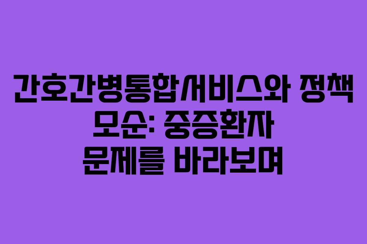 현재 간호간병통합서비스는 많은 환자들에게 필요한 지원을 제공하는 것을 목표로 하고 있다. 하지만 중증환자들은 이 서비스의 혜택을 제대로 누리지 못하고 있는 상황이다. 예를 들어, 중증환자들은 간호 서비스가 부족하여 필요한 치료를 제때 받지 못하는 경우가 많다. 이러한 문제는 시스템의 구조적 결함에서 비롯된다. 서비스의 설계 자체가 중증환자의 요구를 충분히 고려하지 않은 결과라는 점에서, 정책적 개선이 시급하다.