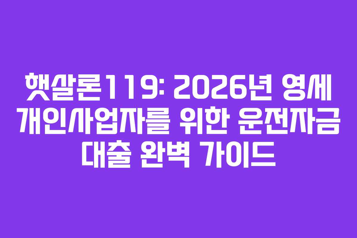 햇살론119: 2026년 영세 개인사업자를 위한 운전자금 대출 완벽 가이드