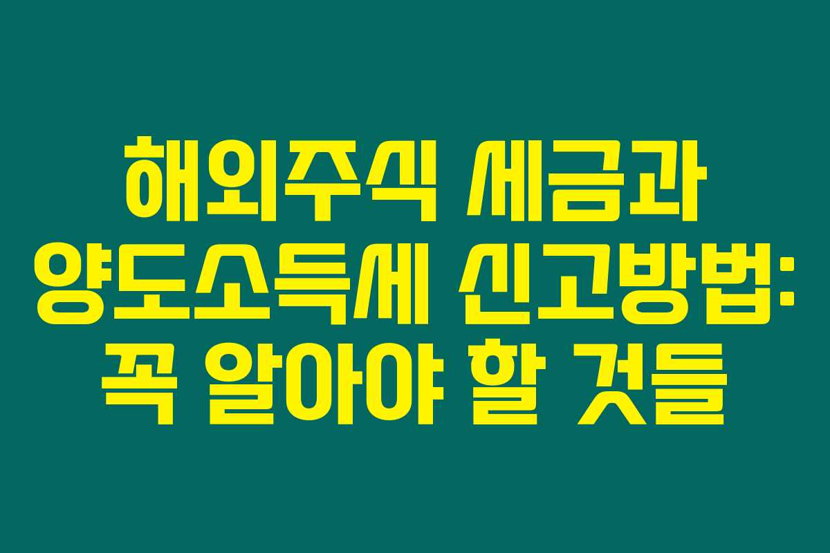 제가 직접 경험해본 결과로는, 해외주식 투자에 대해 많은 분들이 양도소득세에 대한 정보를 잘 모르고 있다는 점이었습니다. 그래서 이번 글에서는 해외주식의 세금, 특히 양도소득세의 신고 방법 및 납부 방법에 대해 자세히 설명드리겠습니다. 아래를 읽어보시면 해외주식 투자로 인한 세금 문제를 보다 쉽게 이해하실 수 있을 것입니다.