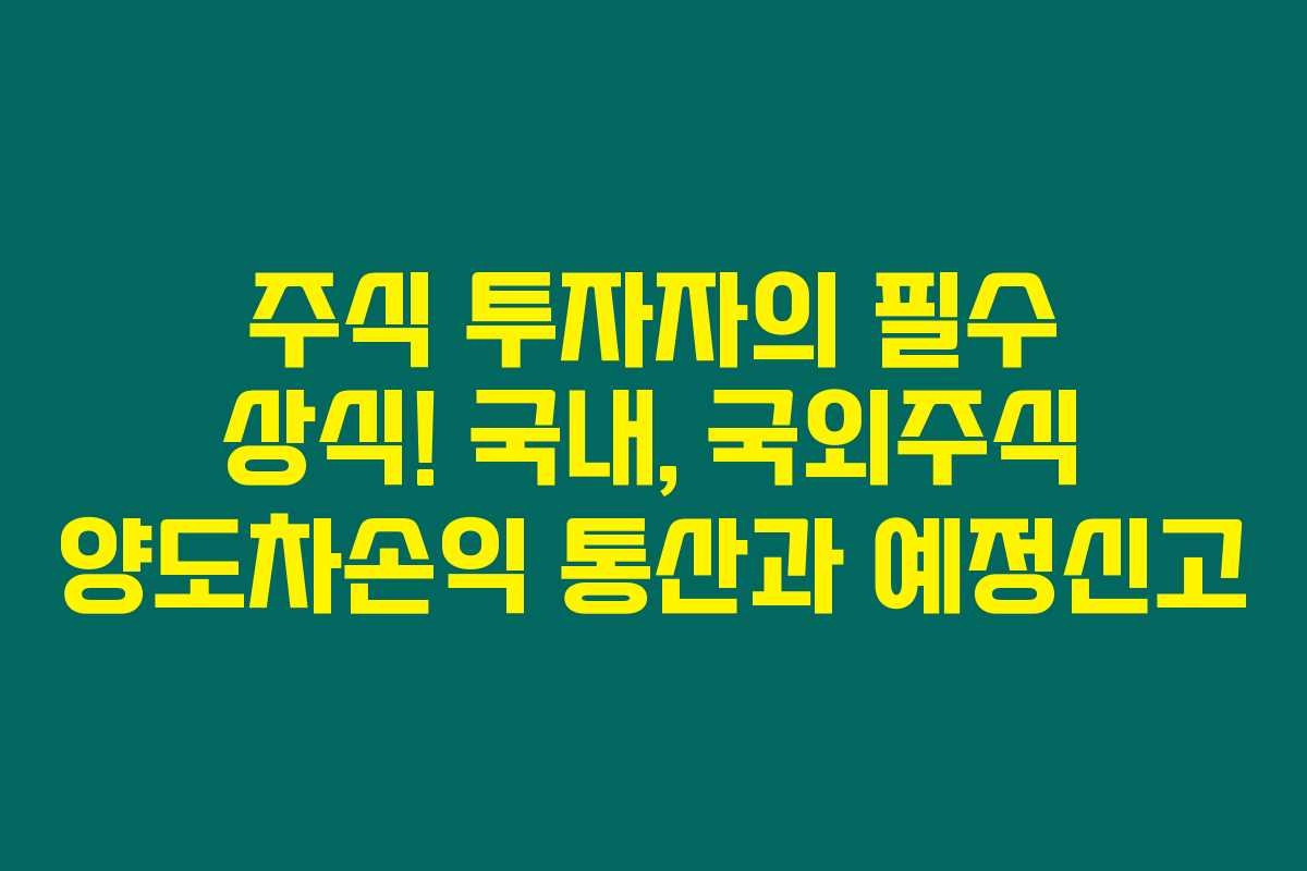 국내주식과 국외주식 투자자는 모두 양도소득세를 면밀히 검토해야 합니다. 특히 사업소득이나 기타 소득과 통산하는 경우에는 더욱 실제 세무 처리에 유의해야 하죠. 잊지 말아야 할 것은 언제나 변화하는 세법에 따라 유연하게 대응하는 것이란 점이에요.