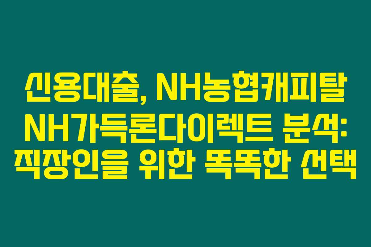 결론적으로, 직장인 신용대출에 대한 정보는 개인의 재정 관리에 있어 매우 중요한 부분이에요. NH농협캐피탈의 NH가득론다이렉트는 무서류 신청과 빠른 입금의 장점이 있지만, 평균 금리가 다소 높은 점도 고려해야 합니다. 저의 경험을 바탕으로 여러분께 도움이 되는 정보가 되었기를 바랍니다. 항상 필요할 때는 전문가와 상담하시고, 신중하게 결정하세요!