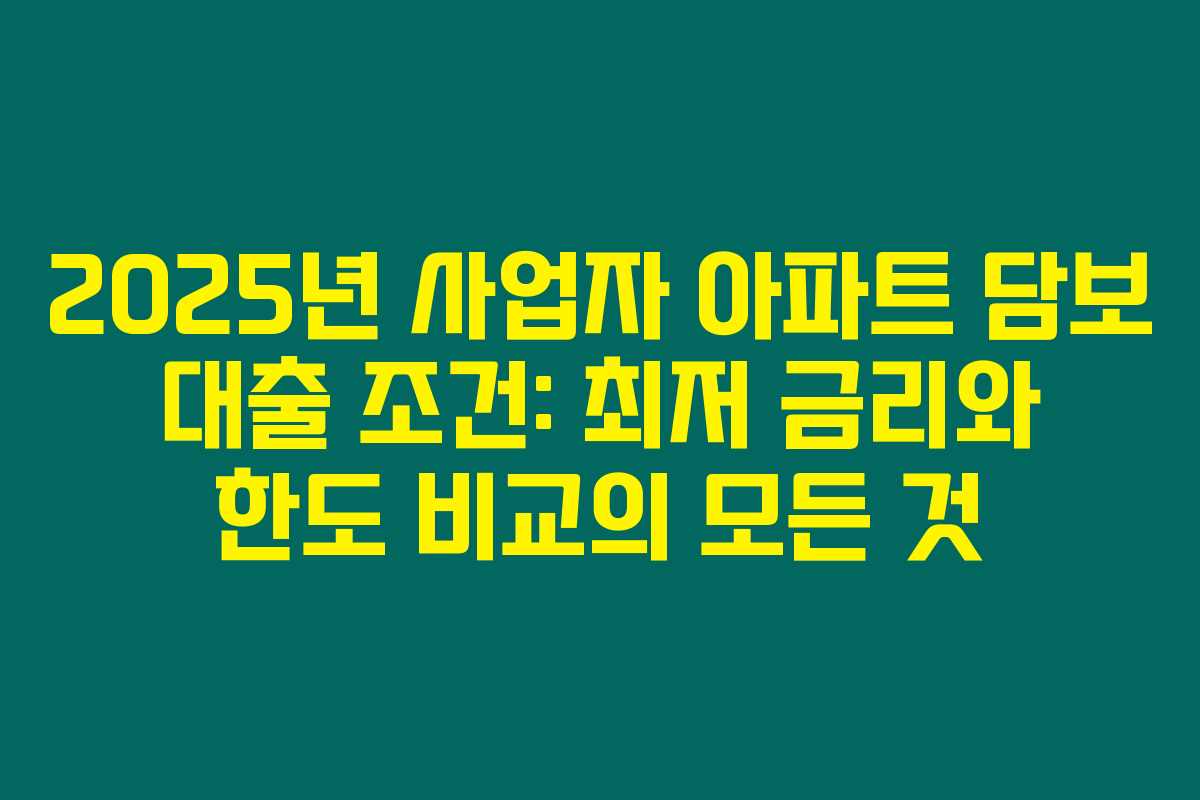 마무리하자면, 2025년 사업자 아파트 담보 대출에 대한 정확한 분석과 이해가 사업 운영에 큰 도움이 될 것입니다. 적절한 대출 전략을 세우고 최적의 조건을 찾아 지속 가능한 성장을 이루길 바랍니다.