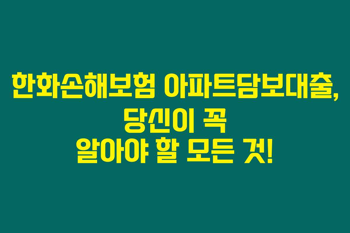 제가 직접 리서치한 바로는 한화손해보험의 아파트담보대출은 주택 구매나 자금 마련을 원하시는 분들에게 유용한 선택지가 될 수 있어요. 아파트를 담보로 하여 안정적인 대출이 가능하다는 점에서, 많은 분들이 관심을 가질 만한 상품이지요. 아래를 읽어보시면 한화손해보험 아파트담보대출의 신청자격, 대출금리, 한도 등 필수 정보를 확인하실 수 있을 거에요.