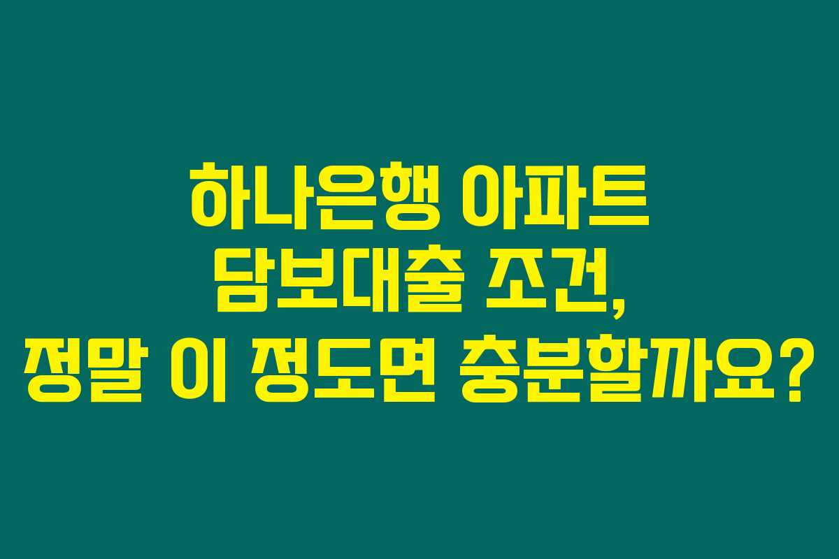 하나은행의 아파트 담보대출은 여러 요소에 따라 신청 조건이 달라지는데요, 제가 직접 체크해본 바로는 신용도와 소득 수준이 중요한 판단 기준이랍니다. 대출금액이 적거나 신용등급이 높으면 보다 유리한 조건이 적용되기도 해요.