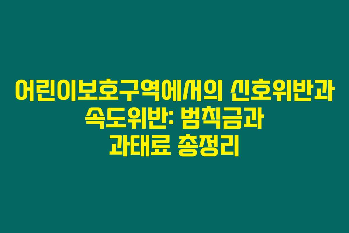 어린이보호구역에서는 어린이의 안전을 위해 특별한 교통 규제가 있습니다. 제가 직접 조사해본 바로는, 이러한 구역에서의 신호위반과 속도위반에 따른 범칙금 및 과태료는 일반 도로와 상당한 차이를 보입니다. 아래를 읽어보시면 어린이보호구역에서의 법규 위반에 대해 꼭 알아야 할 정보들이 담겨 있으니, 주의 깊게 살펴봐 주세요.
