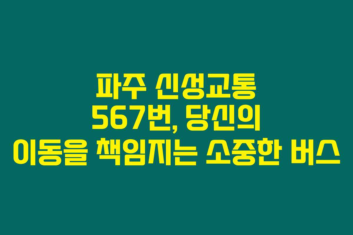 파주에서 신성교통 567번은 지역 주민들과 방문객를 위한 중요한 교통 수단으로 자리 잡고 있습니다. 다양한 경유지와 합리적인 요금 덕분에 많은 분들이 만족하며 이용하고 있으니, 추후 이동이 필요하시다면 꼭 이용해 보셔서 편리한 대중교통을 경험해보시길 바랍니다. 더 많은 정보가 필요하신 분들은 언제든지 댓글로 남겨주세요!