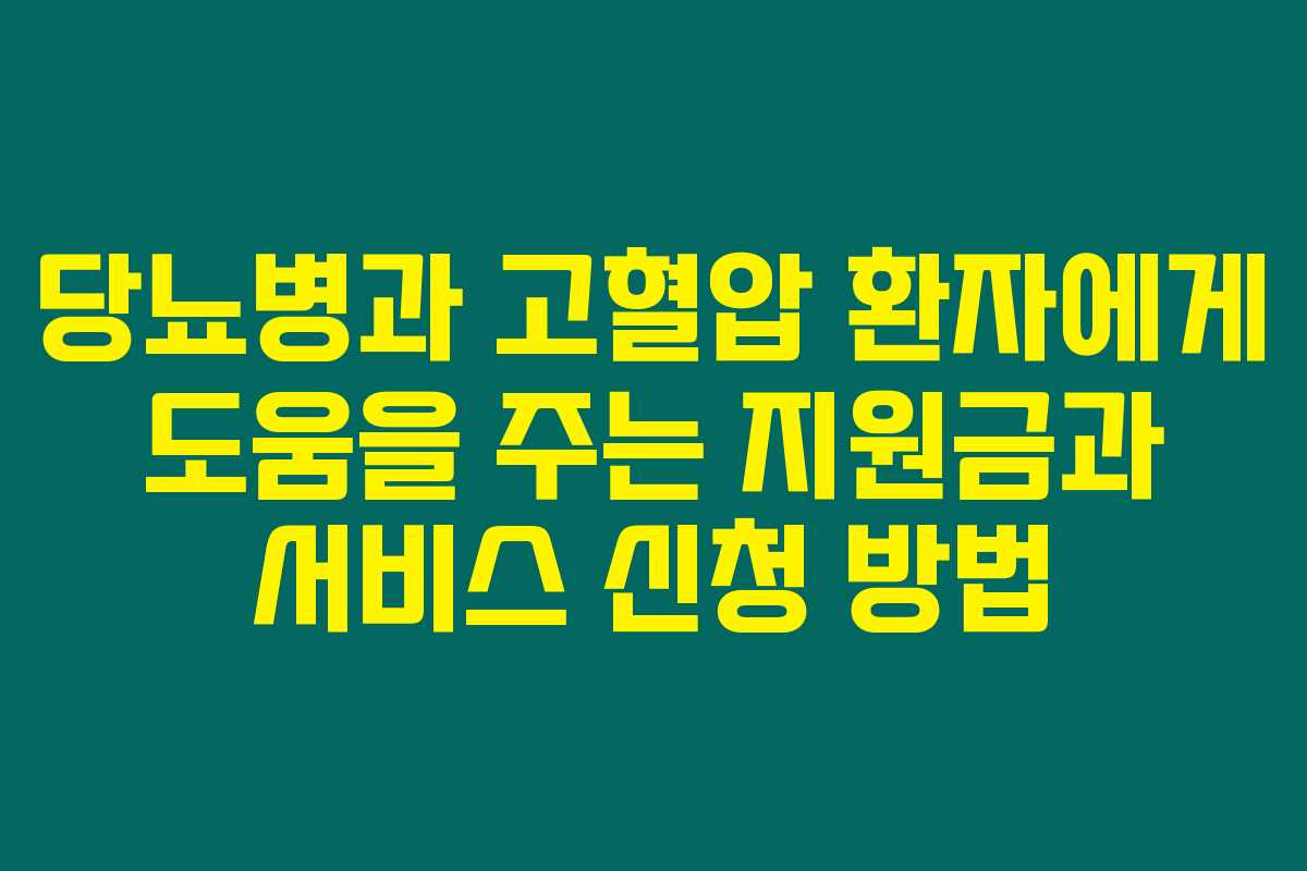 제가 직접 경험해본 결과로는, 만 30세 이상의 당뇨병과 고혈압 환자분들이 다양한 지원금 및 서비스 혜택을 누릴 수 있다는 사실이 정말 중요하더라고요. 특히 40대 이상 분들이라면 더욱 필수적으로 알고 계셔야 할 내용들입니다. 치료비와 약값 지원 외에도 여러 가지 유용한 서비스가 있으니, 아래를 읽어보시면 많은 도움이 될 거예요.