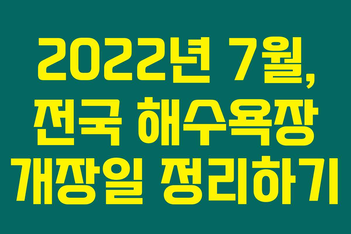 2022년 해수욕장 개장일은 각 지역마다 다르며, 대부분 7월 초부터 시작됩니다.