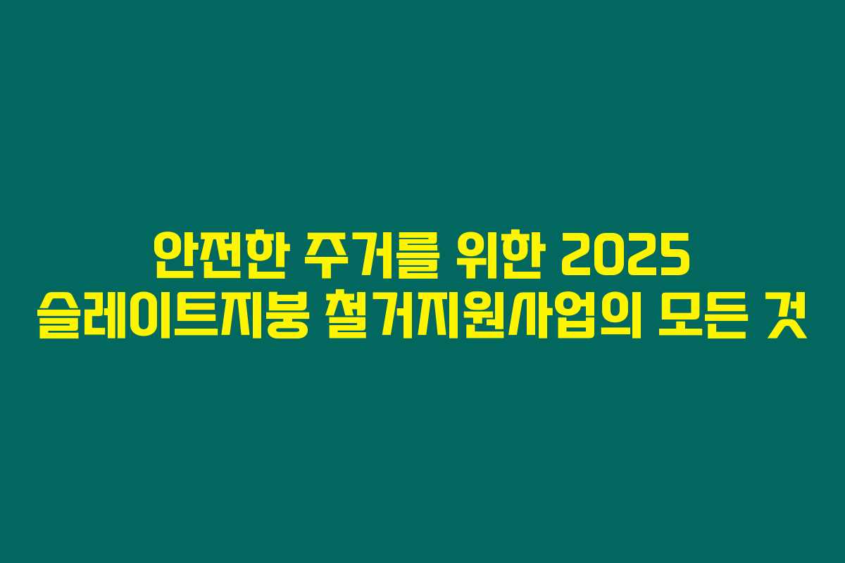 제가 직접 알아본 바로는, 오래된 슬레이트지붕은 건강에 해로운 석면이 포함되어 있어 매우 위험하답니다. 그래서 정부에서는 2025년에 슬레이트지붕을 철거하고 더 안전한 주거 환경을 만들기 위한 철거 지원사업을 시행합니다. 주택뿐만 아니라 비주택까지 포함되어 있어, 관심이 필요한 정보랍니다. 아래를 읽어보시면 이 사업의 대상, 신청 조건, 지원 금액 등을 종합적으로 이해할 수 있을 거예요!