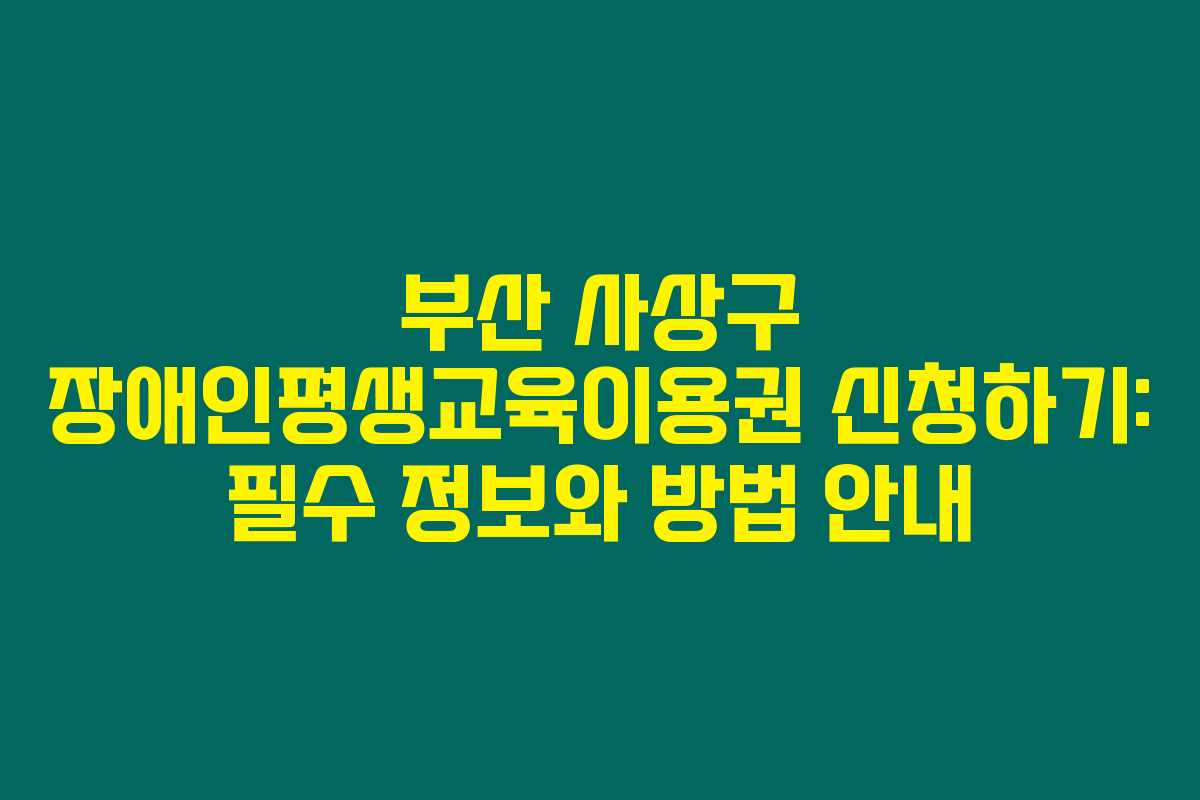 부산 사상구의 장애인 평생교육이용권 신청이 비록 번거로울 수 있지만, 필요한 정보를 잘 준비하고 적극적으로 참여하여 많은 분들이 혜택을 누리기를 바랍니다. 이 외에도 필요한 정보가 있다면 언제든지 문의해 주세요.