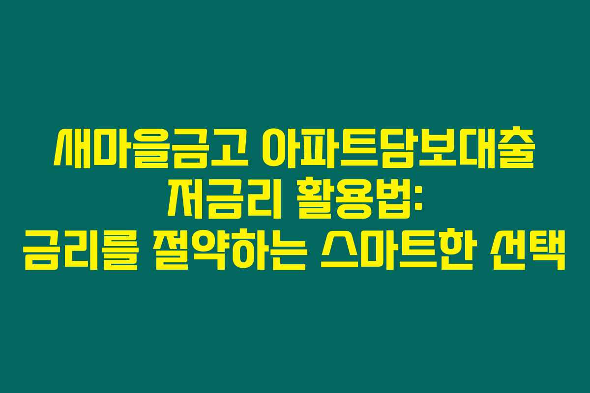 제가 직접 체크해본 바로는, 새마을금고 아파트담보대출은 저금리로 자금을 확보할 수 있는 매우 유용한 금융 상품입니다. 새마을금고는 협동조합 형태로 운영되며, 다양한 금융 서비스와 함께 대출상품에서도 좋은 조건들을 제공하고 있습니다. 아래를 읽어보시면 새마을금고 아파트담보대출의 신청 방법, 대출 금리, 이용 시 주의사항 등을 보다 상세히 확인할 수 있습니다.