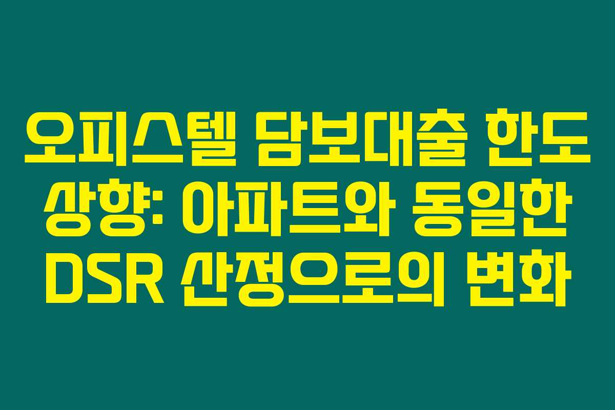 오피스텔 담보대출 한도는 DSR 산정 방식에 따라 결정되며, 변화된 정책에 의해 실제 원리금 상환액이 가까운 영향을 미칩니다.