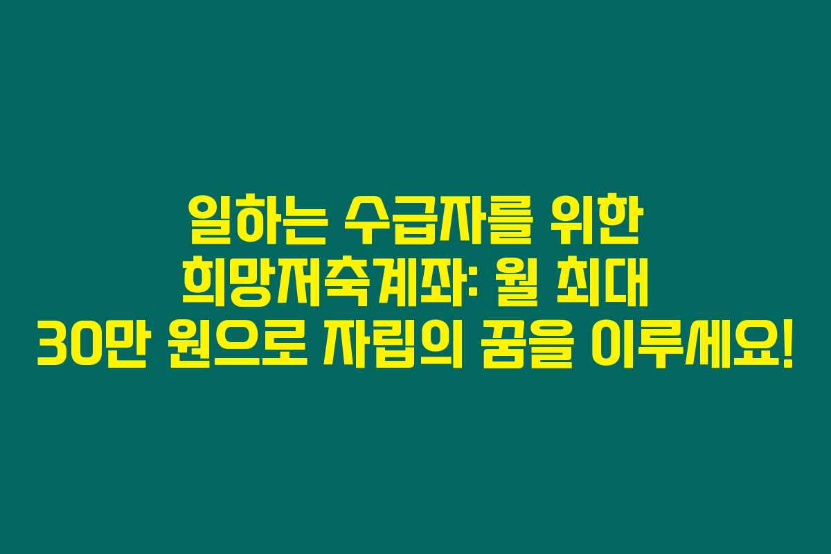 제가 직접 경험해본 결과, 일하는 수급자를 위한 희망저축계좌는 정부 지원을 통해 최대 월 30만 원을 받을 수 있는 훌륭한 자산 형성 프로그램이에요. 과연 이 기회를 통해 어떻게 목돈을 만들고 자립할 수 있는지 궁금하실 텐데요, 아래를 읽어보시면 모든 정보를 알아보실 수 있을 거예요.