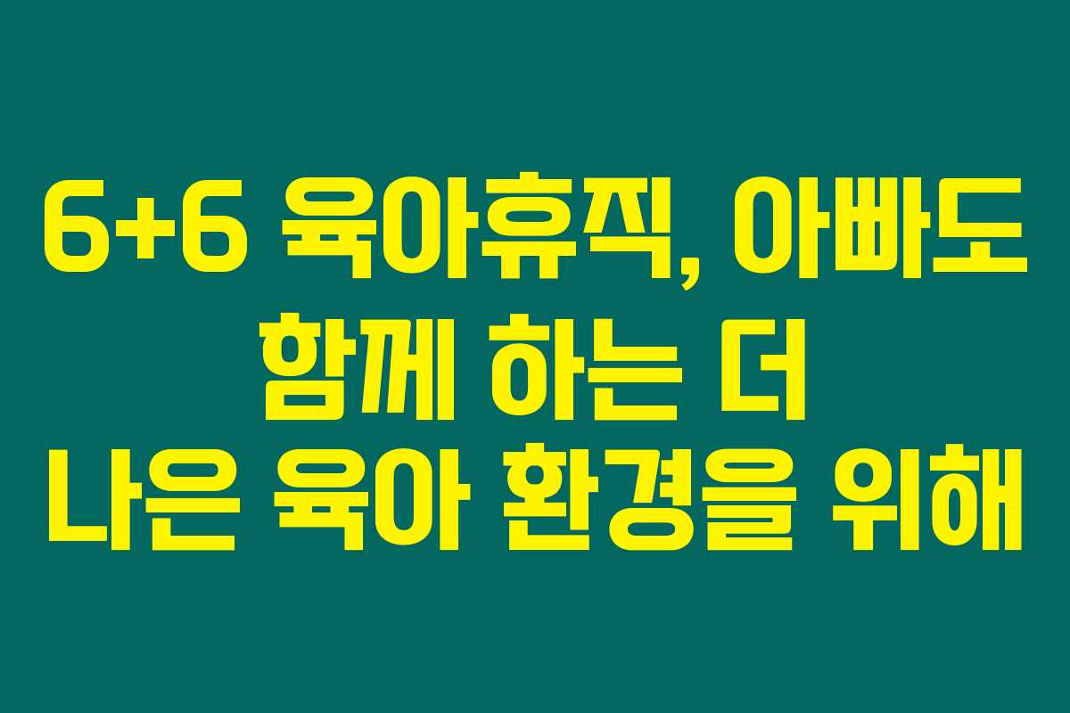 6+6 육아휴직은 고용노동부에서 기존의 육아 휴직 제도를 개선하여 도입하게 된 제도에요. 이 제도는 육아휴직 기간을 늘리고 아기의 연령 기준을 확장하여 더 많은 가족에게 도움이 되고자 하는 목표를 가지고 있습니다.
