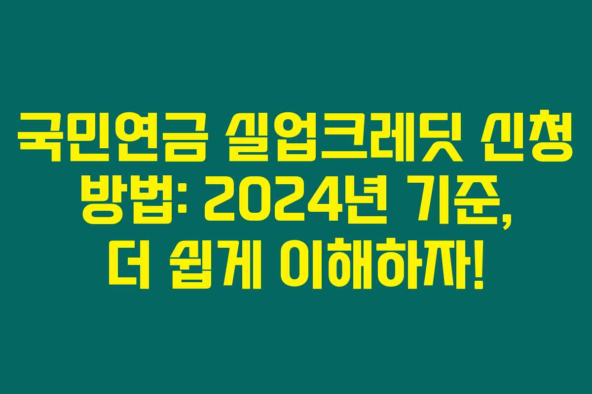 제가 직접 리서치한 바로는, 실업크레딧은 실직으로 인해 경제적 어려움을 겪는 분들에게 도움을 주기 위해 마련된 제도입니다. 이 제도는 국민연금 보험료의 일부를 지원해줘, 가입 기간을 유지하고 노후 대비를 도와줍니다. 아래를 읽어보시면, 실업크레딧의 신청 방법을 자세히 알 수 있어요.