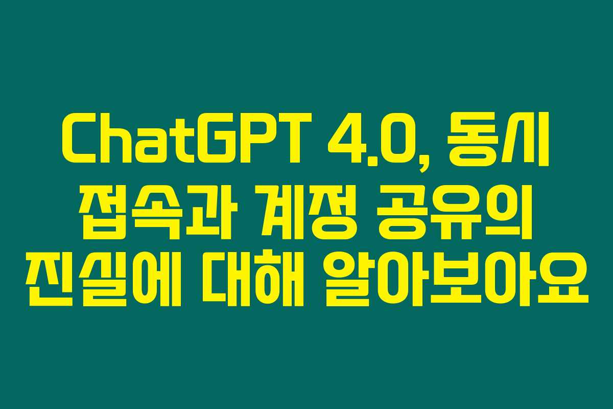 OpenAI의 최신 모델인 ChatGPT 4.0에 대해 많은 궁금증이 생기고 있죠. 제가 직접 경험하며 알아본 바에 의하면, 동시 접속과 계정 공유가 어떻게 이루어지는지 궁금해하시는 분들이 많아요. 아래를 읽어보시면 이 두 가지에 대한 명확한 정보를 드릴게요.