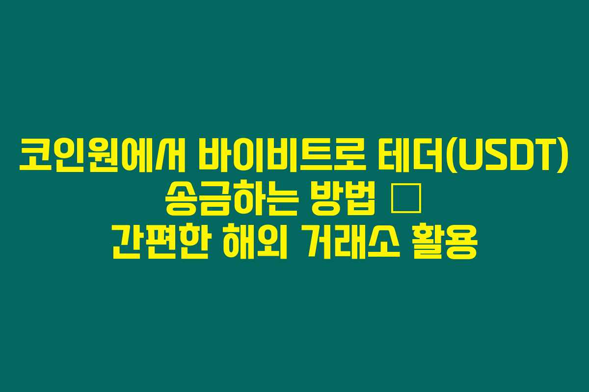 제가 직접 경험해본 결과로는, 코인원에서 바이비트로 테더(USDT)를 송금하는 과정이 생각보다 간단하고 쉽게 진행될 수 있었습니다. 아래를 읽어보시면, 코인원에서 테더를 구매하는 방법부터 바이비트로의 송금 과정까지 세부적으로 설명드릴게요. 해외 거래소 송금이 필요한 분들에게 도움이 될 것입니다.