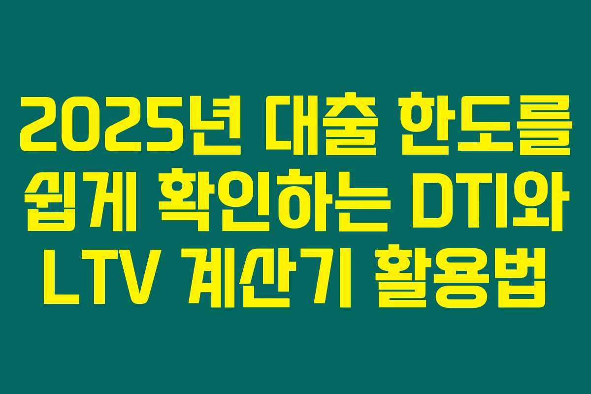 - DTI와 LTV 계산기를 활용해 미리 점검해 보는 것이 좋습니다.