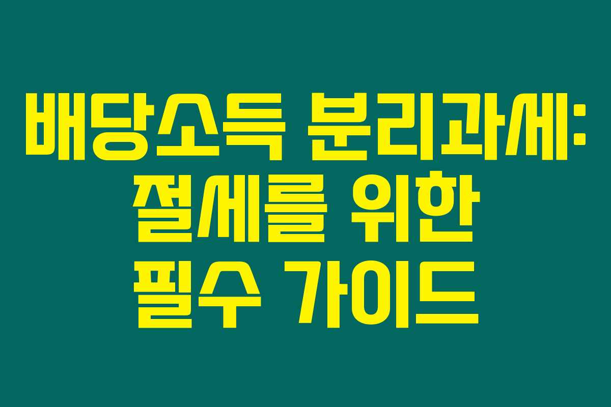배당소득 분리과세는 고소득자의 경우 누진세 부담을 줄이고, 안정적으로 세금을 관리할 수 있는 방법입니다.