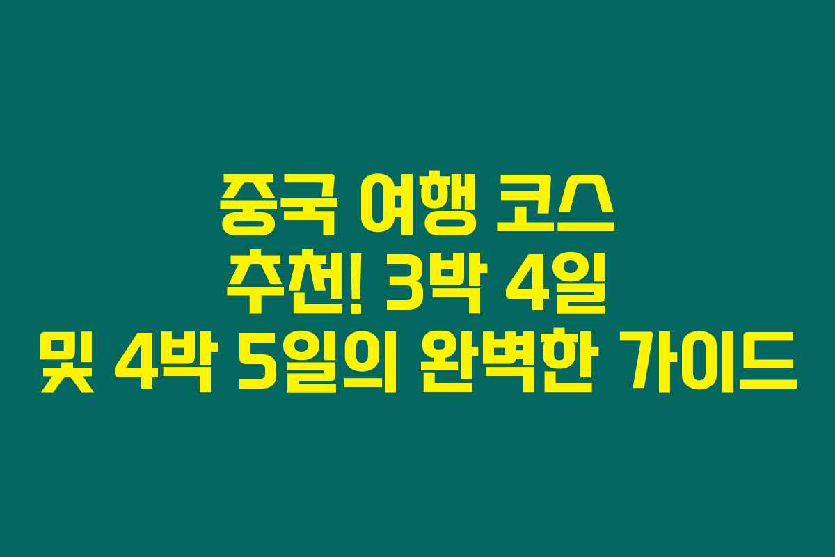 제가 알아본 바로는, 중국은 다양한 문화와 역사, 그리고 특별한 요리로 여행자들에게 매력적으로 다가옵니다. 짧은 일정에도 열정적으로 중국을 탐방할 수 있는 방법이 있습니다. 아래를 읽어보시면, 저는 3박 4일과 4박 5일동안 완벽하게 즐길 수 있는 중국의 여행 코스를 소개해 드리겠습니다. 각 도시의 돋보이는 명소와 먹거리, 즐길 거리도 놓치지 않을 거예요.