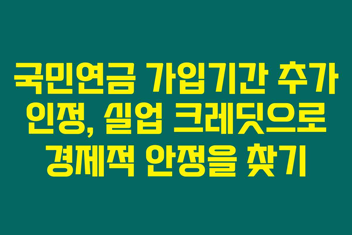 제가 직접 경험해본 결과로는, 국민연금 가입기간 추가 인정 제도 중 하나인 실업 크레딧은 많은 분들에게 경제적 안정감을 주는 유용한 혜택이라는 생각이 들어요. 특히 현재 실업 상태에 있는 분들이나 재취업을 준비하는 분들에게 정말 소중한 제도인데요. 아래를 읽어보시면 이 제도의 내용과 신청 방법, 그리고 주의사항까지 상세히 알아보실 수 있으니 꼭 찬찬히 읽어보세요!