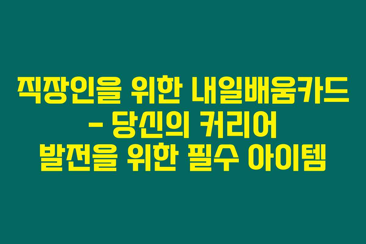 직장인 내일배움카드는 자기 계발과 커리어 업그레이드에 필수인 제도지요. 현재의 직무 환경을 고려하면서 지속적인 학습을 통해 자신의 가치를 높여보는 기회를 만들어보세요!