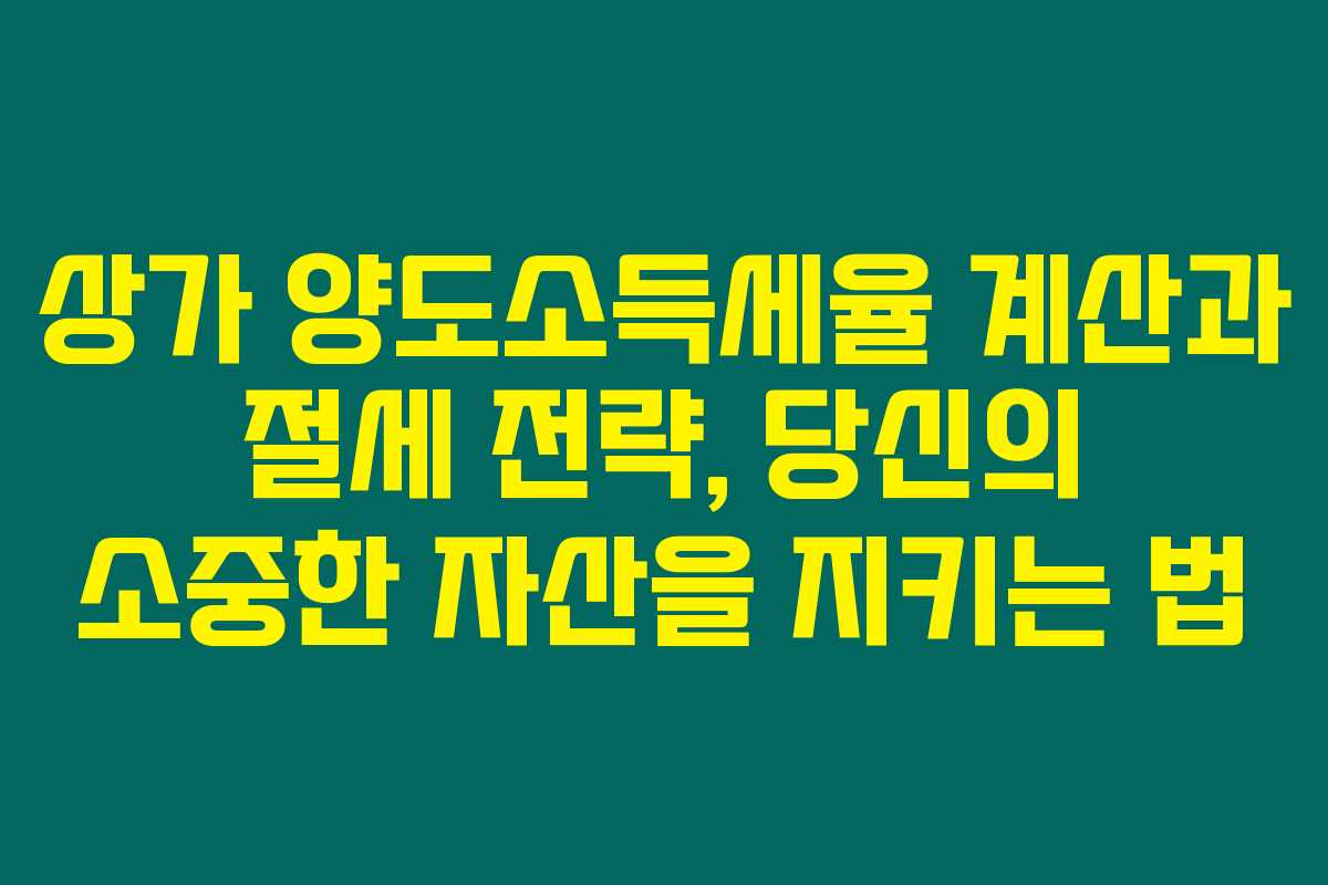 상가 양도소득세를 절세하는 방법에는 몇 가지 유용한 팁이 있습니다. 제가 여러 정보를 조사하고 경험한 결과는 다음과 같아요.