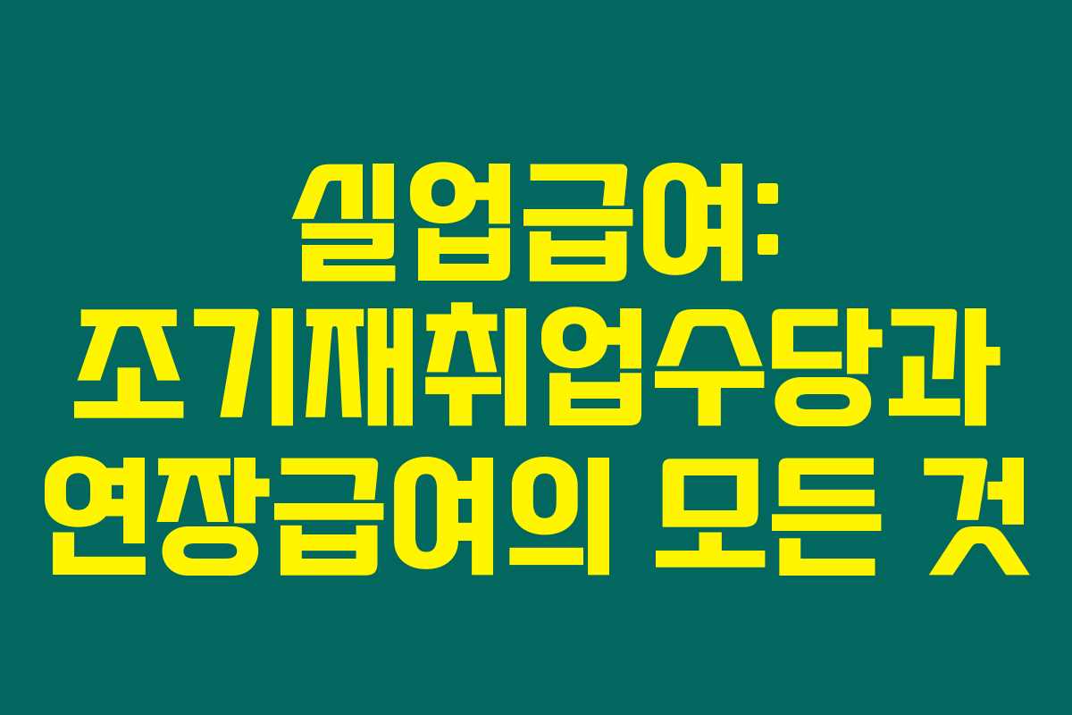 제가 알아본 바로는, 조기재취업수당과 개별연장급여는 실업 상태에서 경제적 부담을 줄이는 중요한 제도예요. 하지만 여러 조건들이 있기 때문에 사전에 충분히 조사하고 이용할 필요가 있어요.