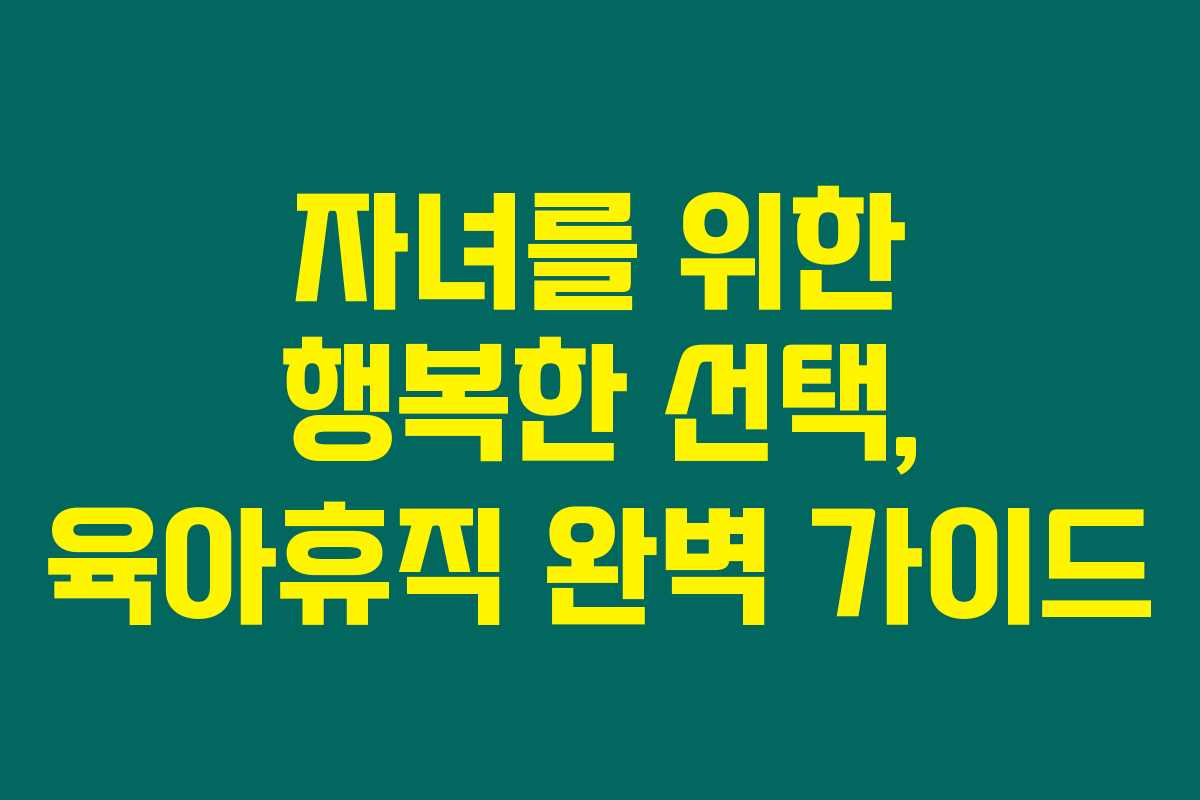 육아휴직은 부모님들이 자녀와 소중한 시간을 보내며 양육에 전념할 수 있도록 해주는 아주 소중한 제도입니다. 이 제도를 잘 이해하고 활용하면 가정과 직장에서 모두 균형을 이룰 수 있을 거예요.