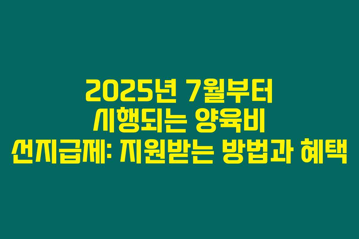 제가 직접 알아본 바로는 2025년 7월부터 한부모 가정을 위한 양육비 선지급제가 시행됩니다. 이 제도는 경제적으로 어려운 양육자에게 큰 도움이 될 것으로 기대하며, 신청 조건과 지급 금액에 대해 자세히 설명드리겠습니다. 아래를 읽어보시면 앞으로의 도움을 받을 수 있는 방법에 대해 잘 이해하실 수 있을 거예요.