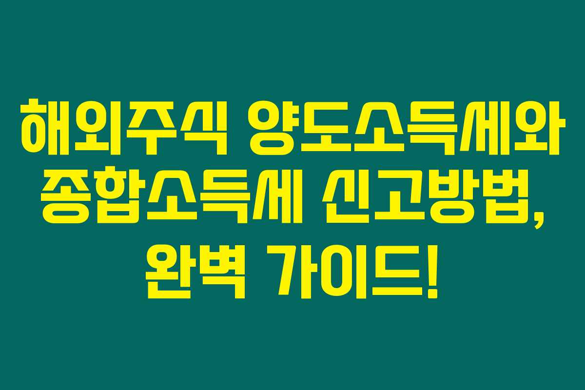 해외주식 양도소득세와 종합소득세에 관한 준비는 필수적입니다. 제가 직접 경험해본 결과, 이 두 가지 세금은 많은 투자자들에게 생소할 수 있지만, 이를 정확히 이해하는 것이 투자에 큰 도움이 되더라고요. 해외 주식 투자 시에는 특히 양도소득세와 종합소득세 간의 관계를 잘 알고 있어야 해요. 아래를 읽어보시면 이들 세금의 성격과 신고 방법을 자세히 알아보실 수 있을 거예요.