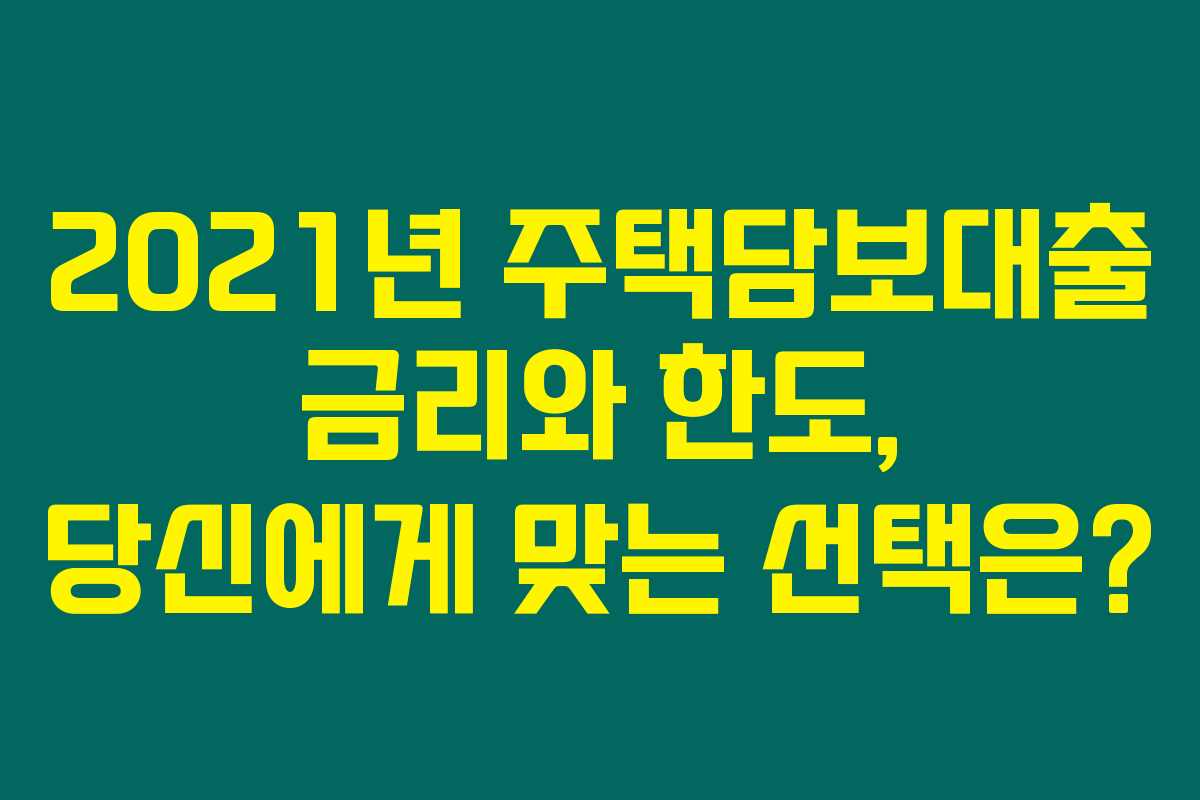 제가 알아본 바로는, 최근 부동산 가격 상승과 함께 많은 분들이 주택을 구매하기 위해 주택담보대출을 고려하는 모습이에요. 주택담보대출은 장기적으로 진행되는 대출이기 때문에, 낮은 금리에 대출을 받는 것이 중요하답니다. 이에 따라 2021년 다양한 은행의 주택담보대출 금리 및 한도를 자세히 비교해보려고 해요. 아래를 읽어보시면 대출을 고려할 때 어느 은행이 당신에게 맞는지 판단하는 데 도움이 될 거예요.