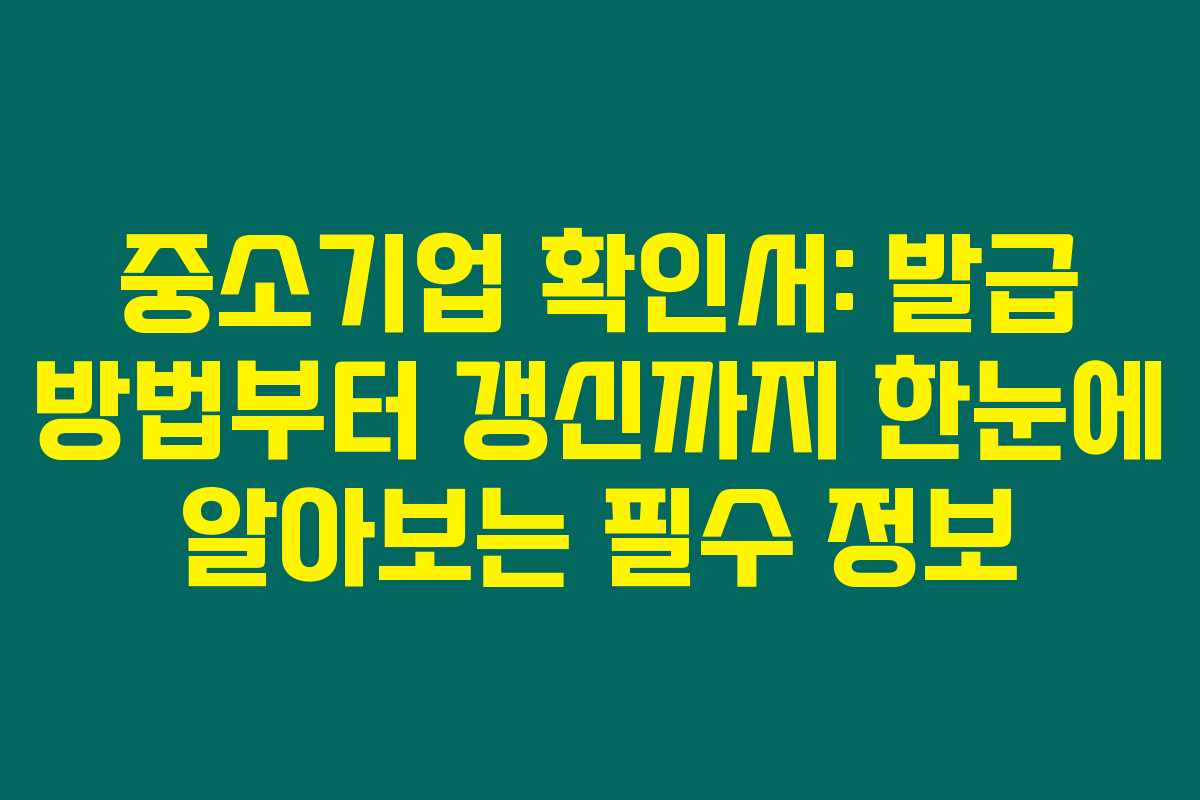 중소기업 확인서는 유효기간이 지나가기 전에 꼭 잊지 말고 갱신 절차를 밟아야 합니다. 제가 직접 알아본 바로는, 갱신 시에는 재무 상태의 최신 정보와 함께 신청해야 하므로 준비물을 꼼꼼하게 체크하는 것이 좋습니다. 유효성이 만료되면 정부 지원을 받지 못할 수 있습니다.