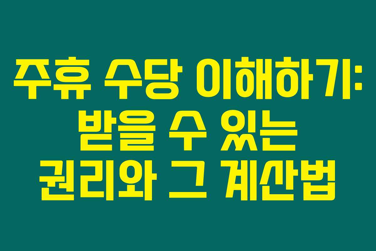 주휴 수당에 대해 제가 직접 확인해본 결과로는, 많은 근로자들이 정확한 기준과 계산법을 잘 모르고 있다는 사실이에요. 다양한 아르바이트나 근로계약에서 주휴 수당이 언급되곤 하지만, 이에 대한 이해가 부족하여 손해를 보는 일도 비일비재하답니다. 오늘은 주휴 수당의 개념, 지급 기준, 그리고 계산법에 대해 자세히 알아보도록 할게요.