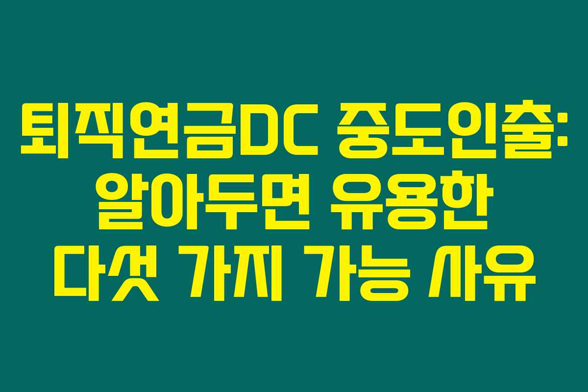 퇴직연금DC의 중도인출은 법적으로 정해진 사유에 해당해야 가능하답니다. 이를 통해 퇴직금이 안전하게 활용될 수 있도록 관리되고 있어요.