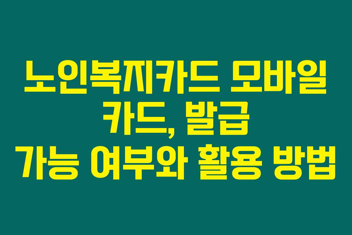 제가 직접 리서치한 바로는, 노인복지카드 모바일 카드는 노년층에게 다양한 혜택을 제공하는 매우 유용한 옵션입니다. 많은 분들이 이 모바일 카드 발급 가능 여부에 대해 궁금해하고 계실 텐데요. 모바일 카드를 통해 찾을 수 있는 혜택과 발급 방법을 자세히 정리해 보았습니다. 아래를 읽어보시면 노인복지카드가 모바일로 활용될 수 있는 방법에 대해 더욱 많은 정보를 얻으실 수 있습니다.