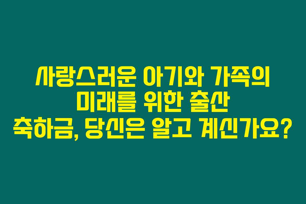 출산 축하금은 아기의 탄생과 함께 기쁨을 나누고, 가족의 미래를 위한 든든한 육아 지원이 될 수 있어요. 앞으로도 많은 가족이 이 제도를 통해 안정된 가정을 꾸려나가길 바라요!