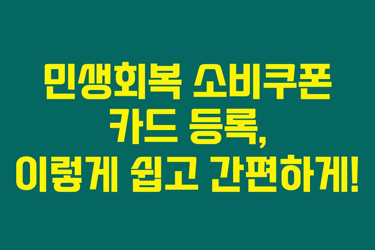 전 국민에게 지급되는 민생회복 소비쿠폰은 우리 지역 경제와 소상공인에 큰 도움을 줄 수 있는 좋은 기회입니다. 카드 등록 방법도 생각보다 쉽고 간편하니, 직접 해보시고 혜택을 누려보세요! 지역 경제를 살리는 주인공이 되어보시는 건 어떨까요?