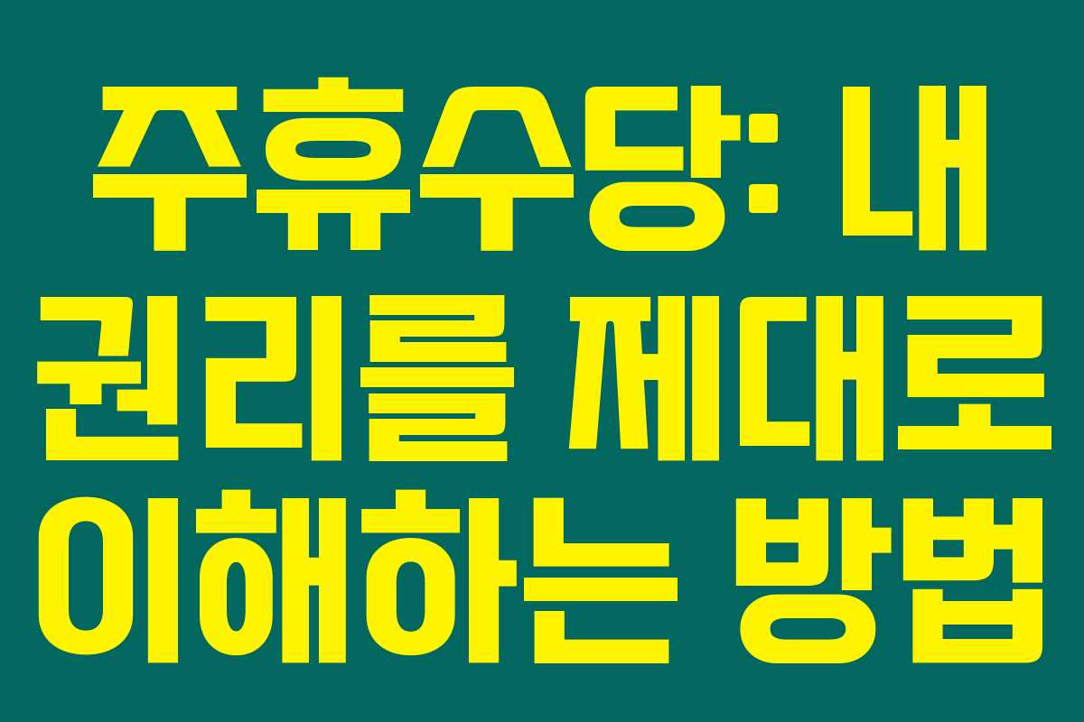 디스크립션: 주휴수당을 제대로 이해하고 실생활에 활용할 수 있는 방법을 알려드립니다. 제가 직접 경험해본 결과, 주휴수당의 조건과 계산 방법에 대해 자세하게 설명드릴게요.