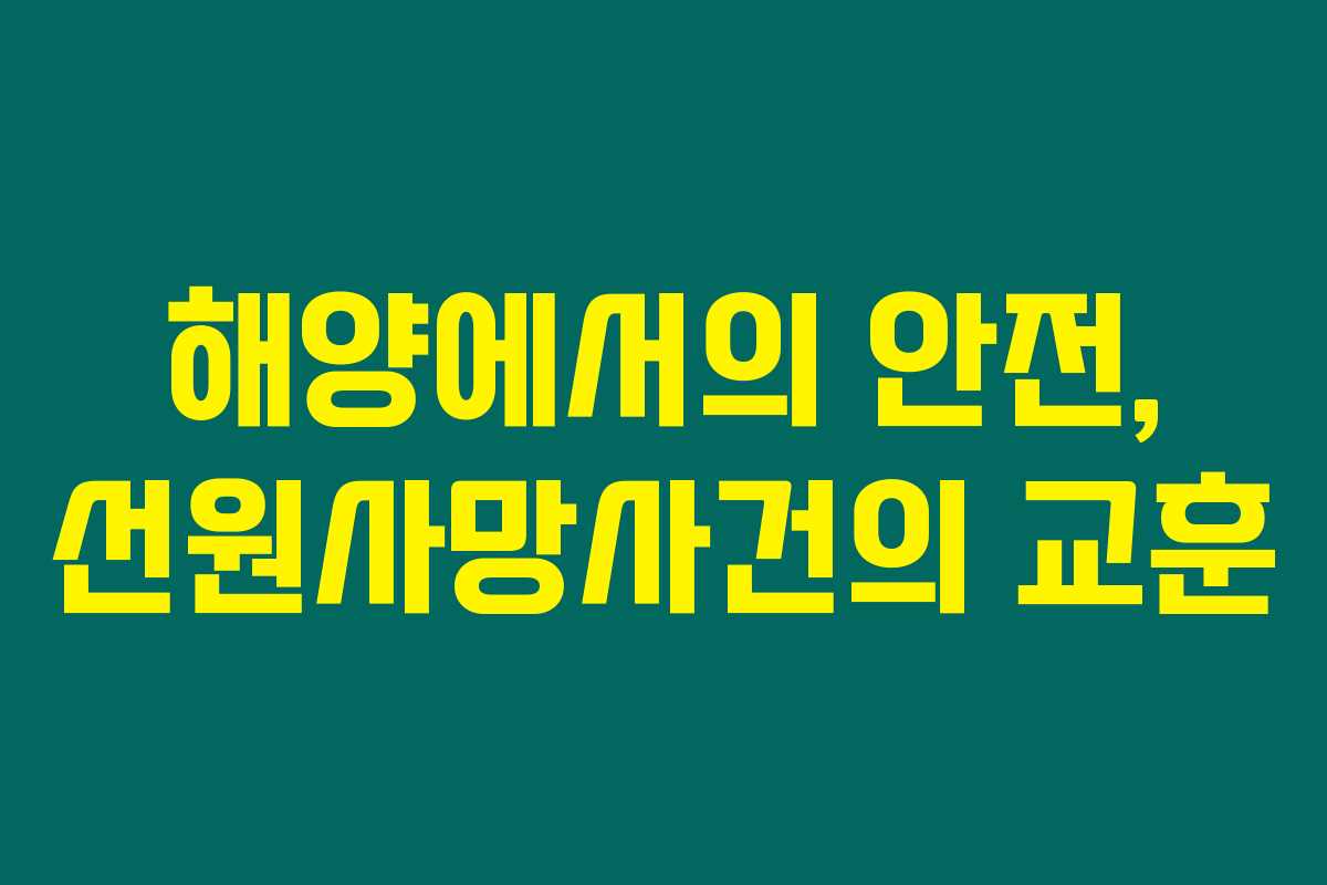 이번 선원사망사건은 우리의 안전과 교육의 중요성을 일깨워 주는 사건이었습니다. 선원들이 안전하게 운영할 수 있도록 더욱 노력해야 하며, 좋은 결과를 이끌어낼 수 있도록 하여야 합니다. 해양에서의 안전은 염원만으로 이루어지지 않죠. 세심한 주의와 철저한 준비가 뒷받침돼야 합니다.