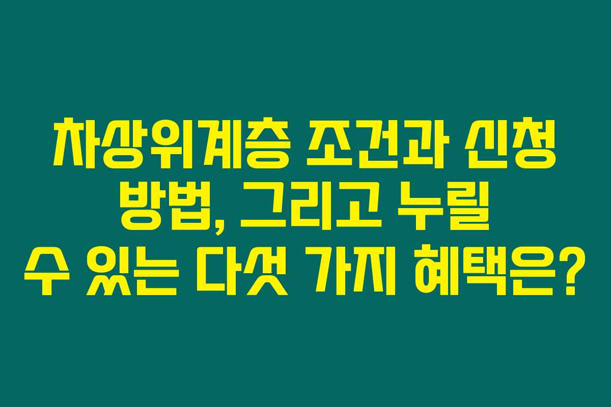 제가 직접 체크해본 바로는 차상위계층 제도는 많은 사람들에게 유익한 지원을 제공하는 프로그램이에요. 특히 경제적인 어려움을 겪고 있는 분들에게는 생계에 큰 도움이 될 수 있지요. 아래를 읽어보시면 차상위계층의 조건과 신청 방법, 그리고 혜택에 대해 정확히 알아보실 수 있을 거예요.