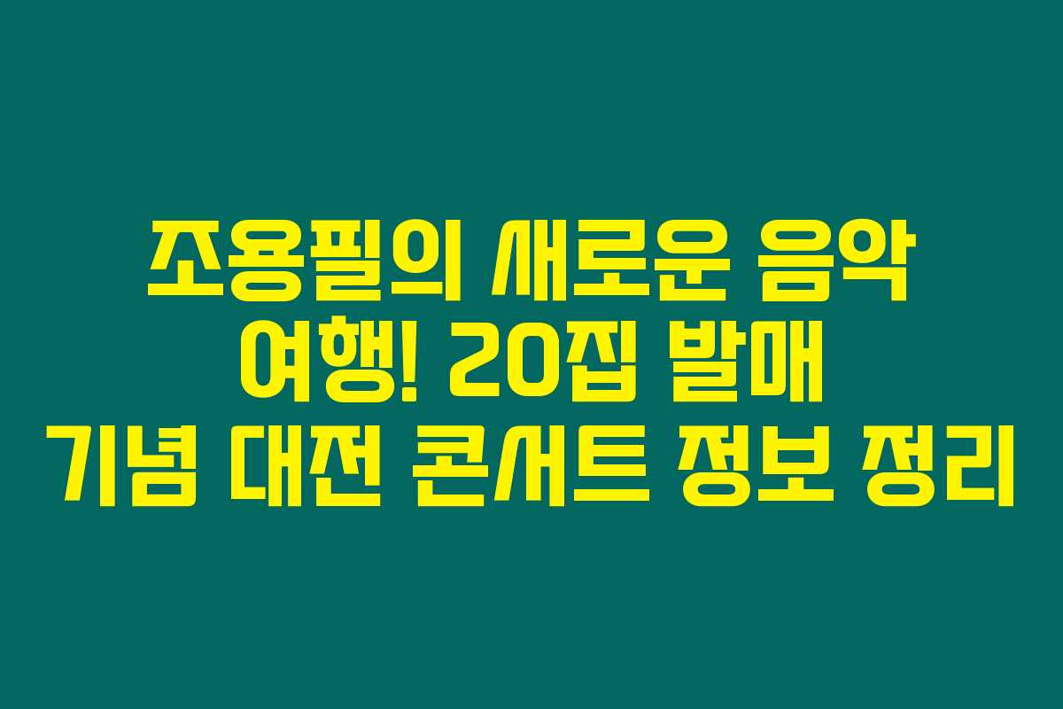 2025년 4월, 한국 음악의 대명사 조용필이 대전에서 특별한 콘서트를 펼친다는 소식이에요! 아래를 읽어보시면, 조용필과 그의 위대한 탄생이 함께하는 이번 대전 콘서트의 기본 정보 및 예매 방법을 확인할 수 있는 기회가 됩니다. 🎤
