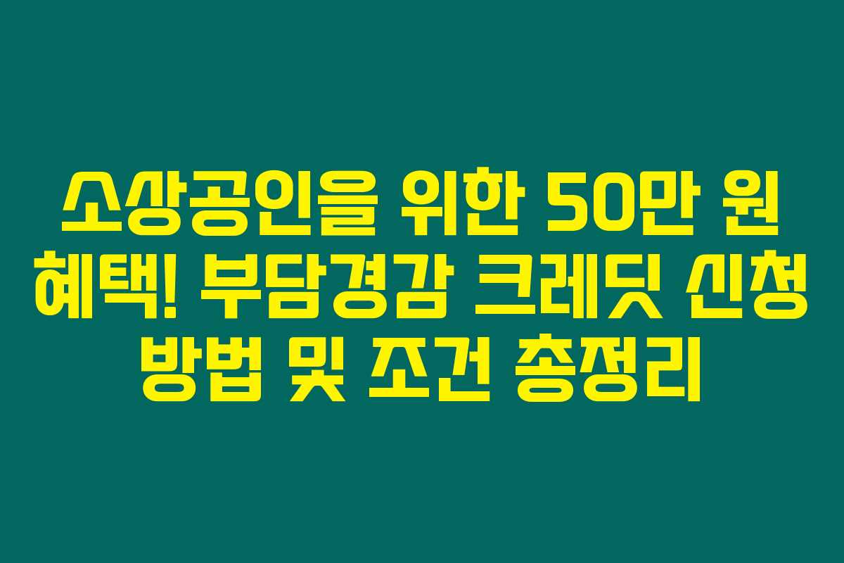 당신의 소상공인 사업을 위한 꼭 필요한 지원금, 부담경감 크레딧! 이 기회를 놓치지 마세요. 잘 활용하시면 실질적인 도움이 될 거예요. 자신의 장사에 소중한 지원이 되기를 바랍니다.