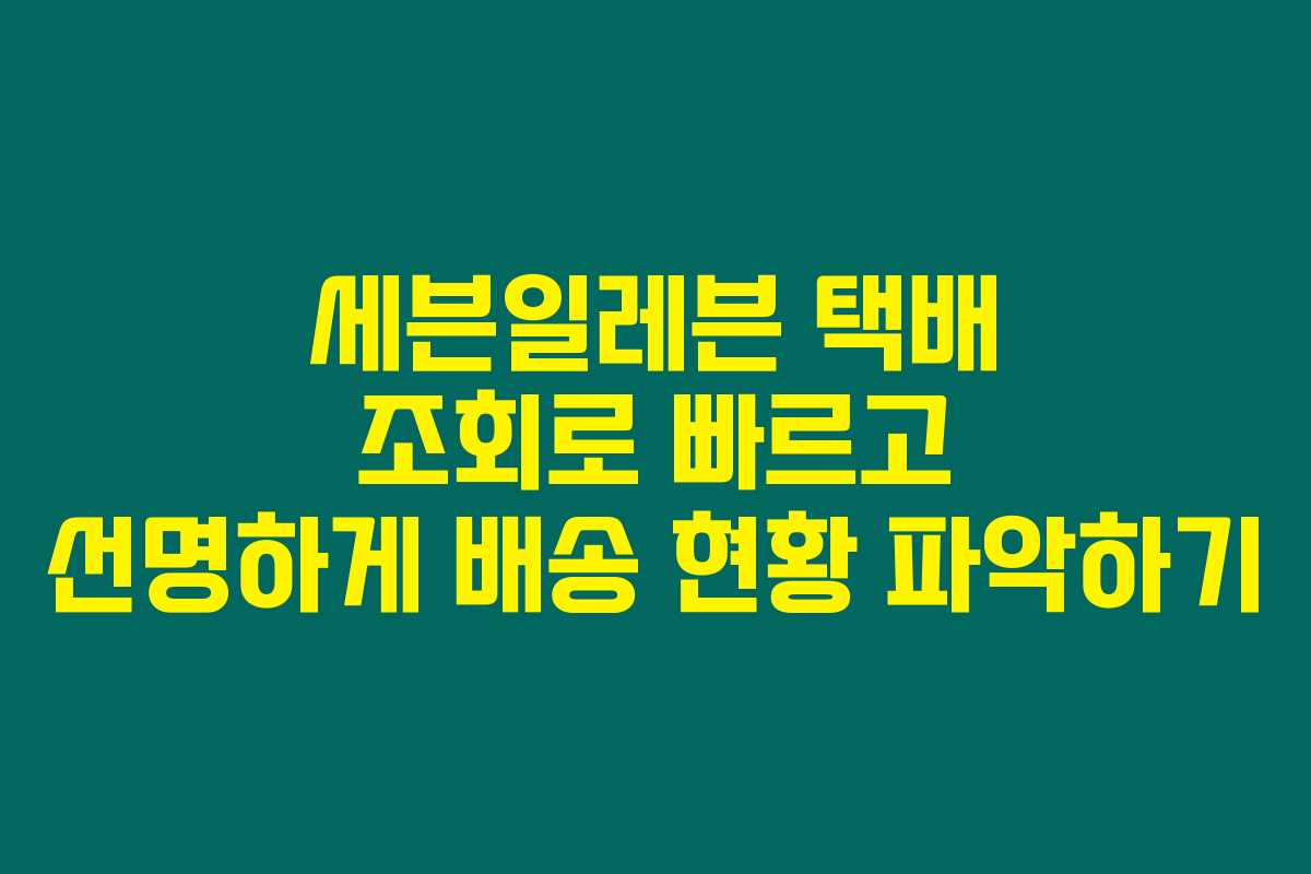 세븐일레븐 택배 조회는 명쾌하고 간단한 서비스로, 더욱 믿을 수 있는 배송 경험을 제공합니다. 이러한 정보가 도움이 되셨길 바라며, 다음번 택배를 보내는 것도 즐거운 경험이 되시길 기원합니다!
