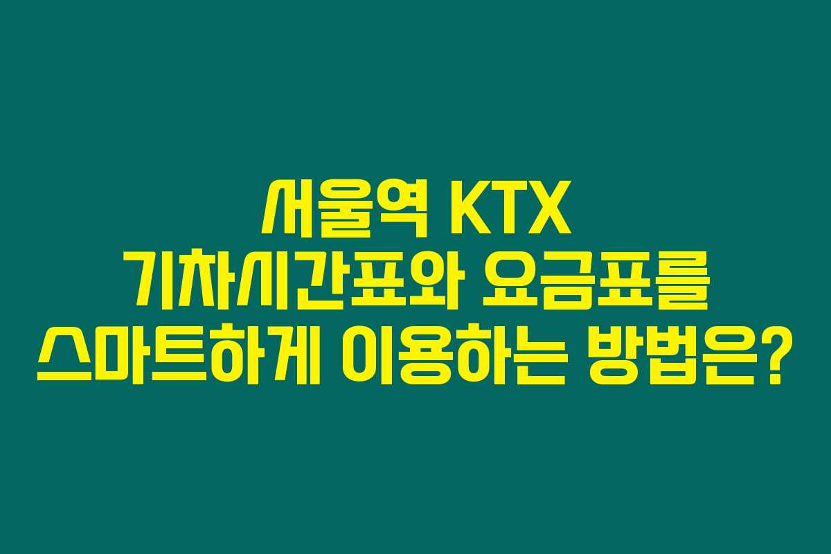 KTX를 자주 이용하는 당신이라면, 서울역에서의 기차시간표와 요금에 대한 정보가 얼마나 중요한지 잘 아실 거예요. KTX를 이용하면서 요금도 아끼고 시간을 절약하는 방법을 찾고 있다면, 아래를 읽어보시면 많은 도움이 될 거예요!