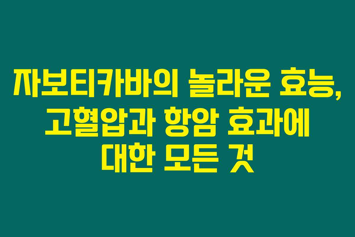 혹시 자보티카바에 대해 들어본 적 있나요? 자보티카바는 고혈압과 항암 효과로 주목받고 있는 슈퍼푸드인데요. 이 열대 과일은 정말 많은 사람들에게 도움이 될 수 있는 건강 식품이라는 사실을 미처 알지 못하는 분들도 많더라구요. 그래서 오늘은 자보티카바의 뛰어난 효능과 섭취 방법에 대해 자세히 알려드릴게요. 아래를 읽어보시면 이 과일이 왜 그렇게 특별한지 이해할 수 있을 거에요!