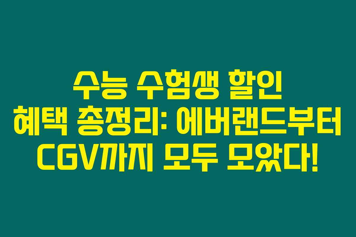수능을 끝내고 기분 좋은 하루를 보내고 싶은 수험생이라면 이거 꼭 알아야 해요! 수능 수험생을 위한 매력적인 할인 혜택들이 쏟아지고 있거든요. 에버랜드, 롯데월드, 제주항공은 물론 다양한 외식업체와 문화 행사까지, 아래를 읽어보시면 이런 다양한 혜택을 놓치지 않고 즐길 수 있는 방법을 찾아볼 수 있어요.