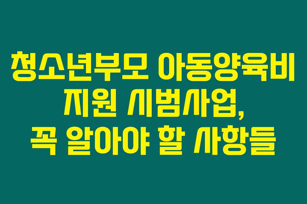 이 시범사업은 청소년 부모와 그 자녀를 지원하기 위해 만들어졌어요. 아동양육비가 월 20만 원 지원되니 잘 활용하셔야겠죠? 아래를 읽어보시면 필요한 정보를 잊지 않고 잘 챙기실 수 있을 거예요.