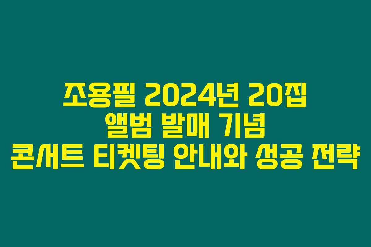 - 예매일정: 조용필의 2024년 20집 발매 기념 콘서트 티켓 예매는 2024년 10월 11일(금) 오전 11시에 시작됩니다.